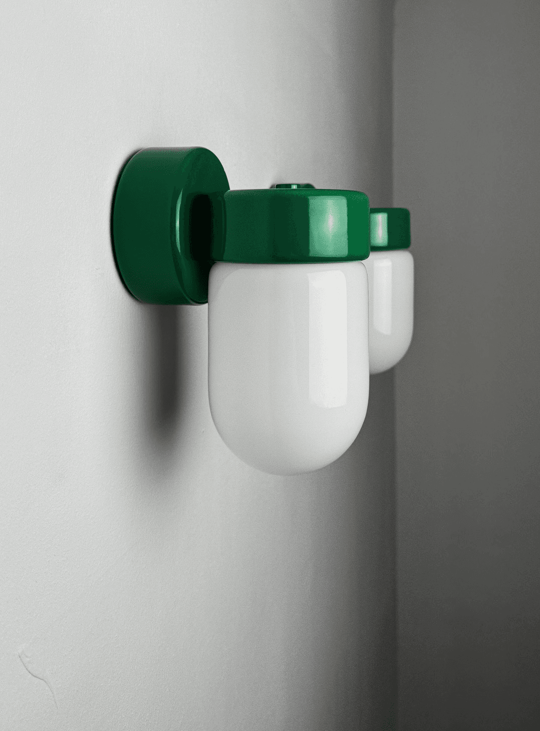 Materials: chrome metal and opaline glass