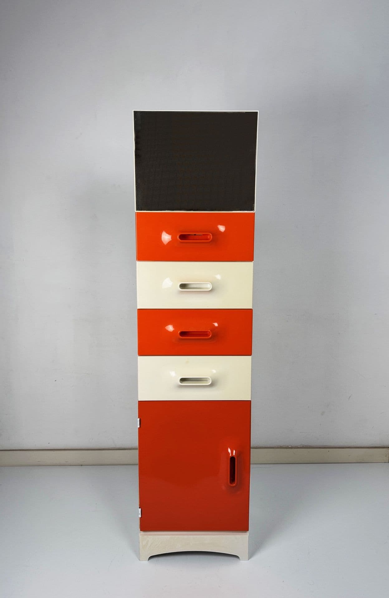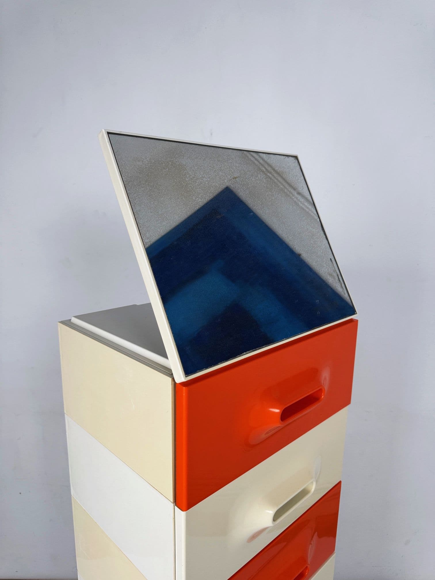 Marc Held storage cabinet with mirror on top for Prisunic, 70's France