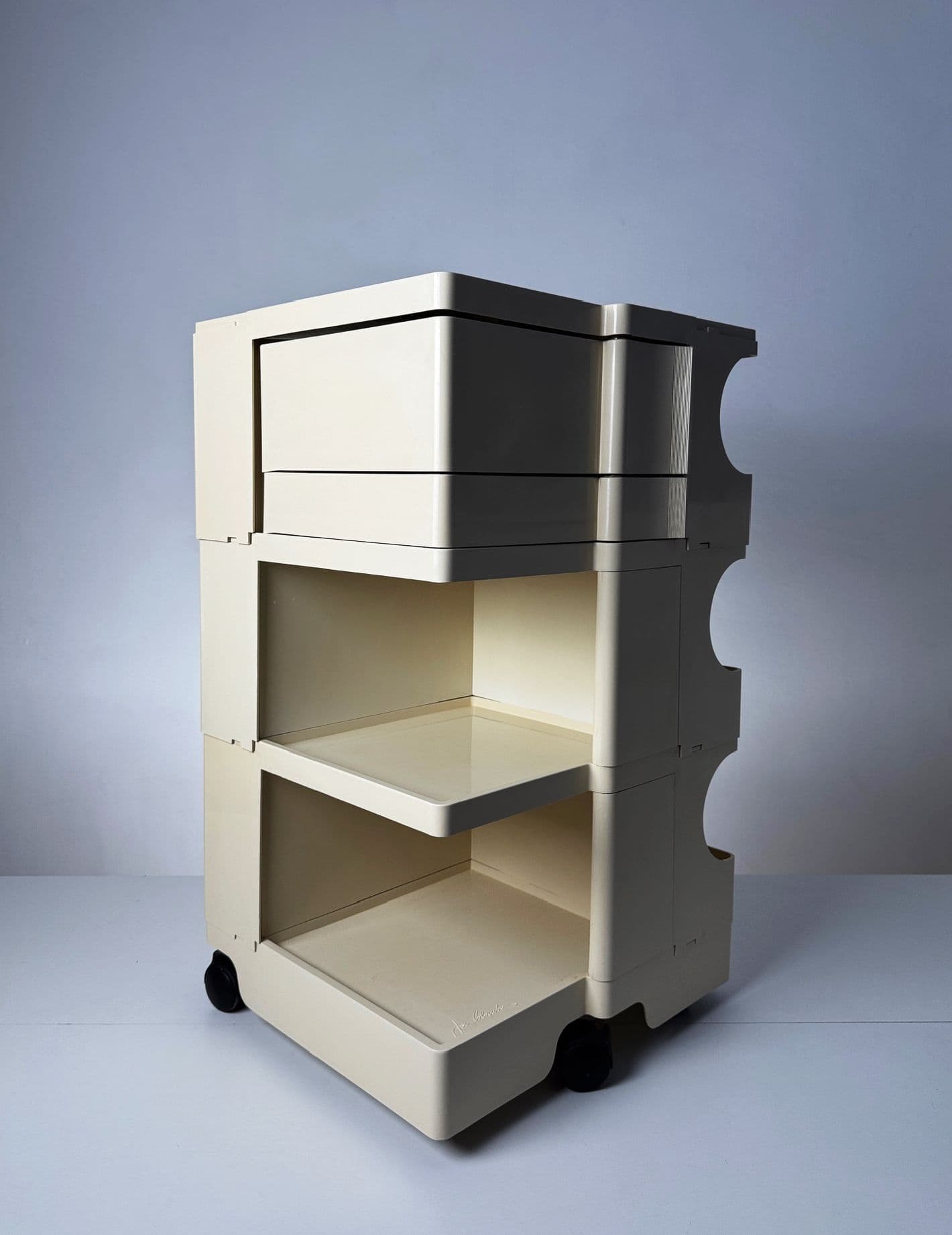Joe Colombo was an influential Italian designer, born on July 30, 1930, in Milan. He is best known for his innovative approach to furniture and industrial design, which often combined functionality with a futuristic aesthetic. Colombo's work is characterized by his forward-thinking vision, emphasizing modularity and adaptability in design.Colombo studied at the Brera Academy and began his career as a painter before transitioning to product design. In the 1960s, he became a prominent figure in the Italian design scene, participating in various exhibitions and gaining recognition for his unique creations. His designs were marked by a playful yet practical approach, often exploring new materials and manufacturing techniques.Among his most iconic works are the "Universale" chair (1965) and the "Rotoliving" system, which showcased his belief in multifunctional furniture. The Universale chair, designed for ease of use and comfort, became a symbol of modern design. The Rotoliving system, which featured rotating and transforming elements, reflected Colombo's vision of flexible living spaces.Colombo was also known for his collaborations with leading manufacturers, such as Kartell and Boffi, through which he created products that are still celebrated today. His designs often incorporated plastic, a material that was relatively new at the time, allowing for innovative forms and structures.Sadly, Joe Colombo's career was cut short when he passed away at the young age of 41 in 1971. However, his legacy continues to inspire designers and design enthusiasts around the world. His work is represented in prestigious museums and collections, including the Museum of Modern Art in New York, and his influence can be seen in contemporary design practices that prioritize user experience and versatility.